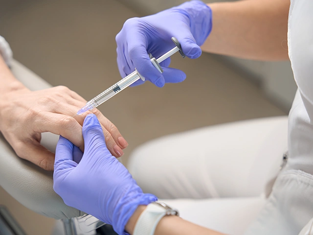 Eingefallene Handbereiche und Falten lassen sich auf natürliche Weise sowohl mit Hyaluronsäure als auch körpereigenen Fettzellen auffüllen. Der Wirkstoff wird mittels feiner Nadeln in die Haut injiziert.